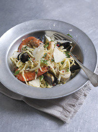 - Toss the seafood mixture and half the Bertozzi Freshly Grated through the cooked linguine and serve, topped with more Parmigiano-Reggiano and parsley.