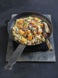 • Once the farro is cooked, add the vegetables and the pancetta to the pot, stir for 1-2 minutes and serve.